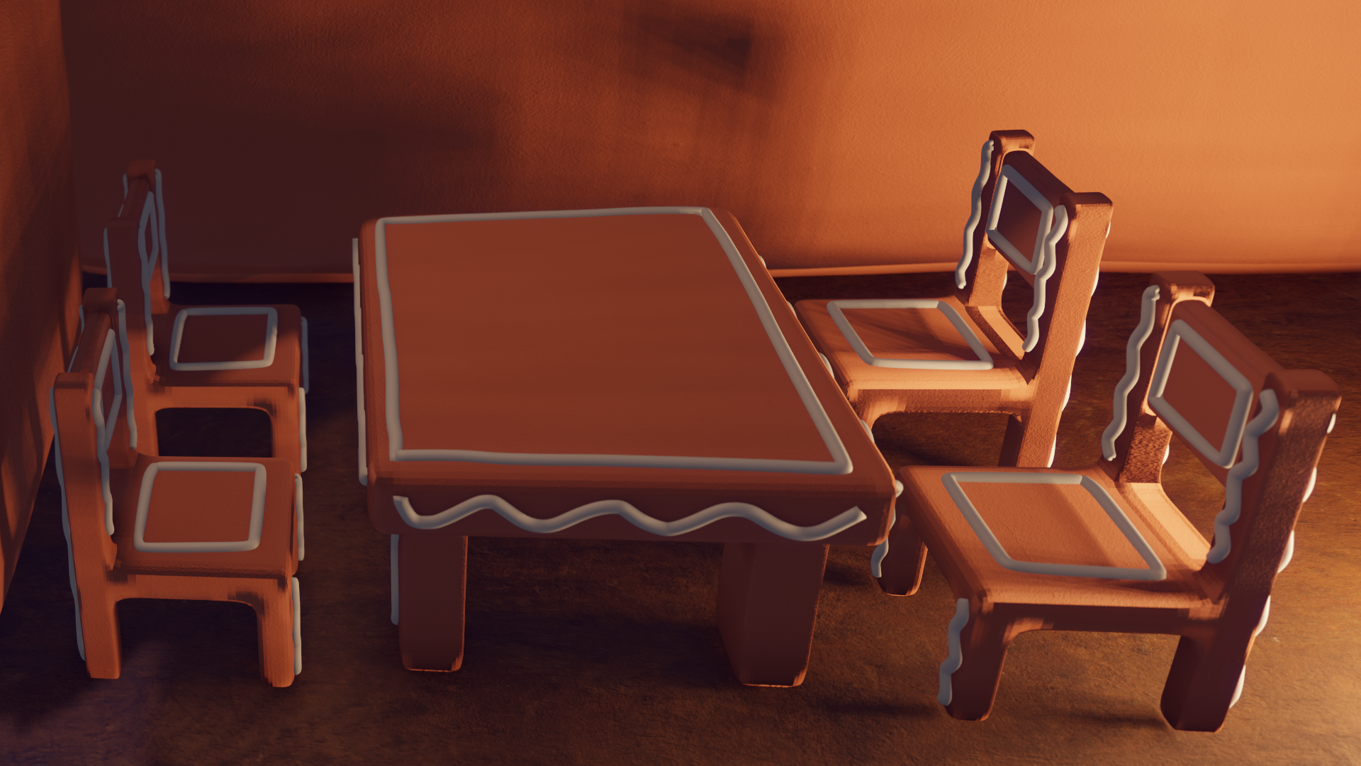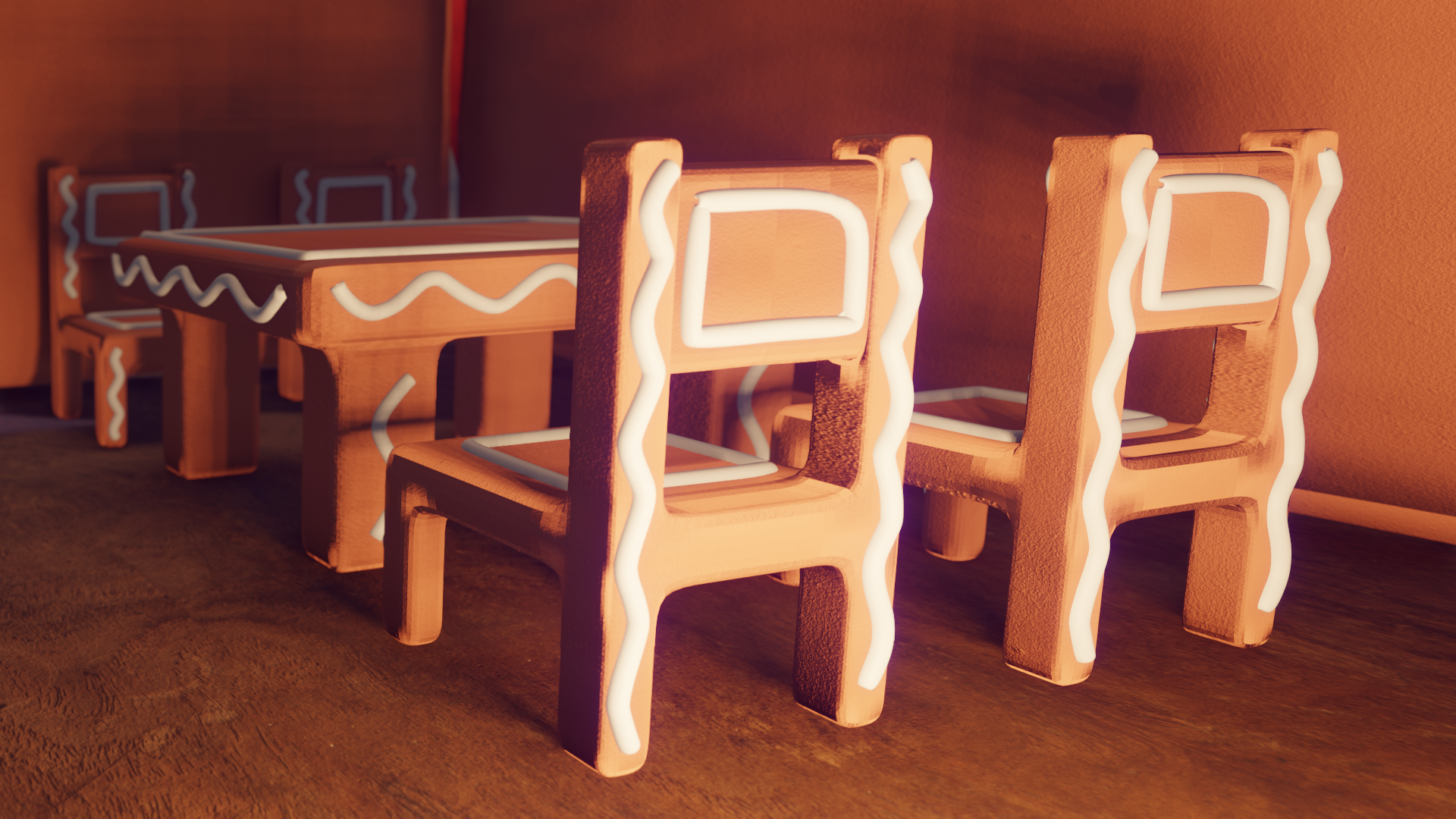 Once I created the model, I was assigned to take a part of the house and make it look more realistic. The part I chose was the dining area and fireplace. Through this part of the project, I focused on texturing, lighting, and depth of field in order to make everything look photo-worthy.