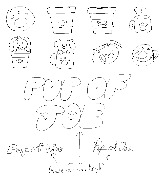 Here are all the concepts I designed for both the logo and title. The idea was to create something that combined the two main ideas of the game, dogs and coffee, so these designs are a portrayal of how to show both of them in a simple and appealing way.