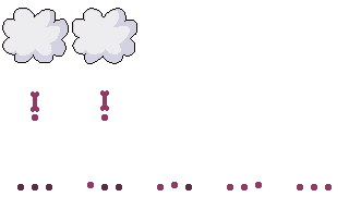 Here are the UI elements that I designed for the game. The first item is a screen where the money would be displayed, which I shaped like a dog bone to stay on theme. The next items are little icon animations for the customer to help display their mood. Depending on how long it takes for a customer to get their order, the icon will differ, starting with the happy green, before going to a neutral white, and ending on an angry red. The final items are for customer orders. When a customer is thinking of what to order, the three dots will appear above their head. When they determine what they want, those dots will transition into an exclamation point. When a ready customer is checked on, the thought bubble will show an image of the food they want to be made.